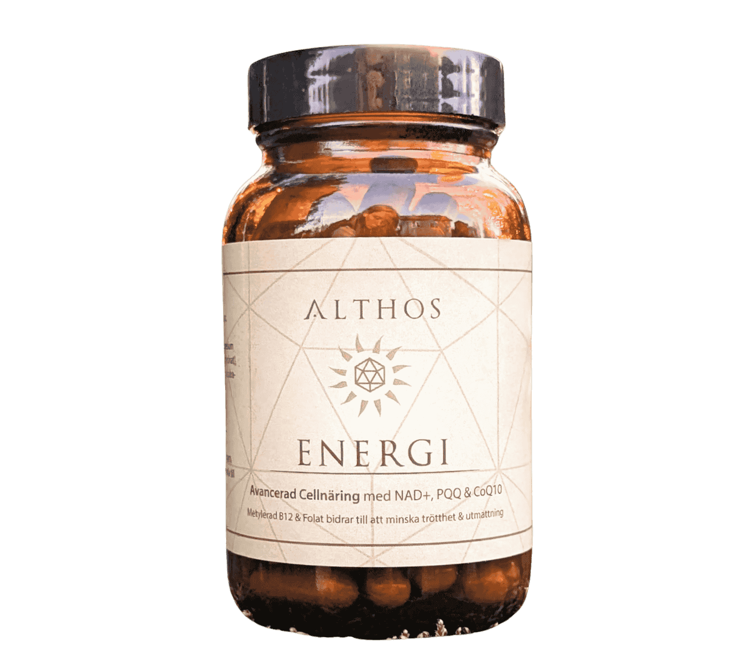 Den innehåller en hög dos av välkända ämnen inom cellenergi och anti-aging, såsom Q10, PQQ och NAD+, tillsammans med metylerade B-vitaminer för kognitiv funktion och adaptogena örter som traditionellt använts för att stödja kroppens motståndskraft mot stress.